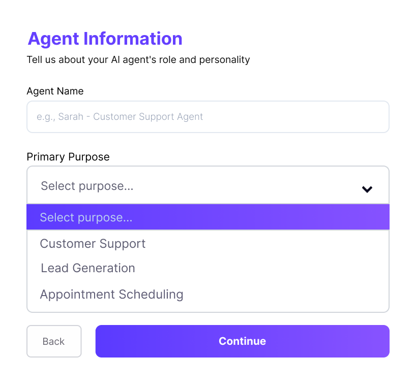 Set up your AI assistant in minutes. Every step is designed to align with your business goals—no tech skills required.